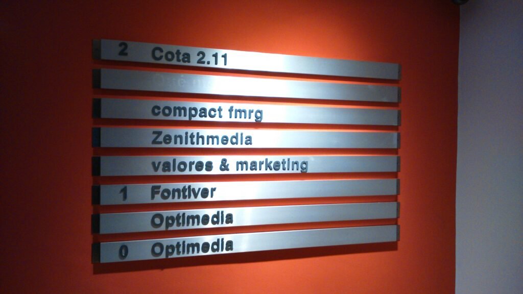 Fabricamos placas corporativas y directorios personalizados en metacrilato, aluminio o acero inoxidable. Son ideales para despachos profesionales, oficinas, portales de edificios y señalización de plantas, combinando elegancia y funcionalidad.